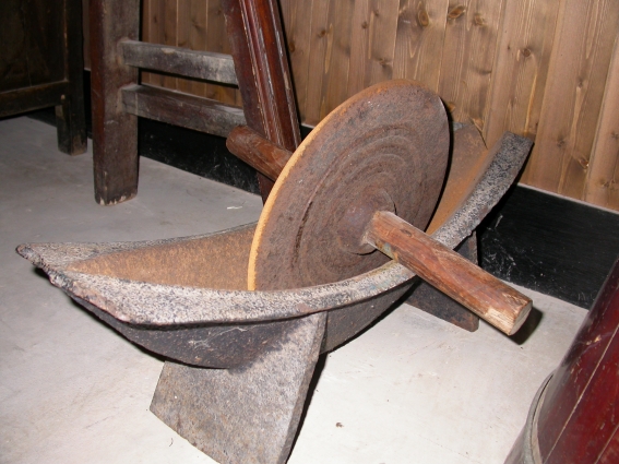 藥碾是研碎藥草之用。鐵製的藥碾碾槽成船形,槽底尖凹,放入草根莖之類藥用植物,用鐵製碾輪,雙手握木柄來回壓碾,直到粉碎。船頭封口略上翹,船尾開口成漏漕,碾好藥草後從船頭抬高掀起,碎藥從船尾倒出。如果要進一步磨成細粉,就要靠藥臼了。