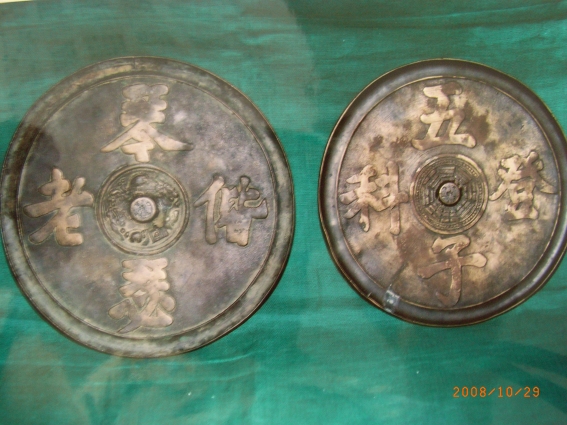 在傳統的結婚儀式中,新娘上花轎後,花轎要邊前走邊撒穀豆,使妖魔邪祟不近新娘身,而穀豆也有祈祝新娘早日添丁之意。新娘為了防身也要帶許多辟邪寶物,其中有寶鏡、弓箭、熨斗和篩子。古代寶鏡皆為銅製,故稱「銅鏡」。銅鏡即為照妖鏡,使妖魔現形,不致危害新娘,新娘上花轎前,要先點上火燭,拿銅鏡照照轎中四個角,有「搜轎」除邪祟之意。新房床上要放著八卦米篩,而新房桌上要放一面銅鏡,也是驅壓邪祟的意思。