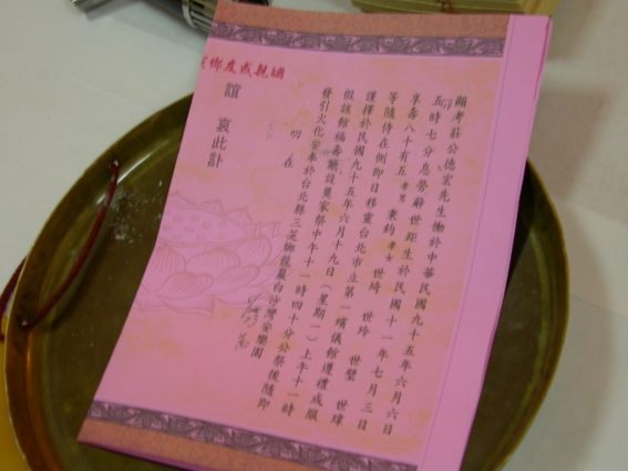 又稱「訃聞」、「訃音」、「訃告」,訃是報喪、告喪的意思,文是文告,而聞是消息的意思,音是音訊,告是告示。所以訃文是家屬在家人亡故後,通知親友亡者身故,亡者的生卒年(國曆、農曆),享壽幾歲,逝世地點(壽終正寢(男性)、內寢(女性)或逝世於何地),何時何地舉行家奠、公奠、何時發引安葬、將土葬或火葬於何處,以及孤哀子等子孫聯名的喪禮文書。