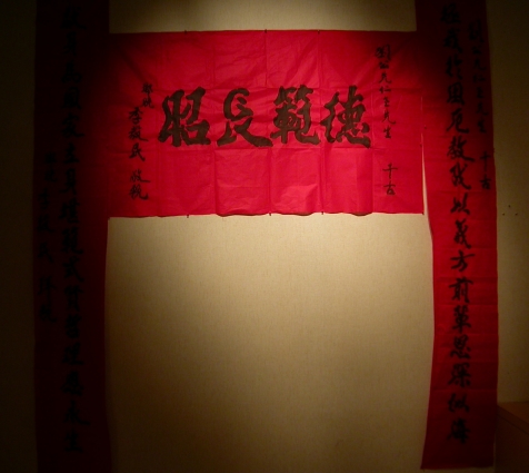 喪禮中以白布寫上一副悼緬亡者的詩句對聯,垂直書寫者,通常為寬一尺半,長八尺多的白布作成,故稱為「輓聯」。一般年輕亡故的用白布書寫;有上年紀的,用黃布書寫;若五代以上,則用紅布書寫。輓聯原為古代輓歌的變體,用來表達對亡者的哀悼之意的聯對。一般而言,倘若亡者為男性,上款多用「千古」,若亡者為女性,上款則書「「靈右」。至於上下款的稱呼與稱謂,則以書寫者與亡者的關係而定,若是尊長逝世,下款則不可以職銜來相對,宜用稱謂。如「子輓父」時的輓聯可用「父親大人千古:生我育我竟爾長辭騎鯨去,呼天問地溘然無語駕鶴蹤。孤子○○、○○泣淚拜輓」;若是「子輓母」的輓聯可用「母親大人靈右:遑說承歡已見昊天鶴唳,未能反哺難禁午夜烏啼。不肖男○○泣淚拜輓」。