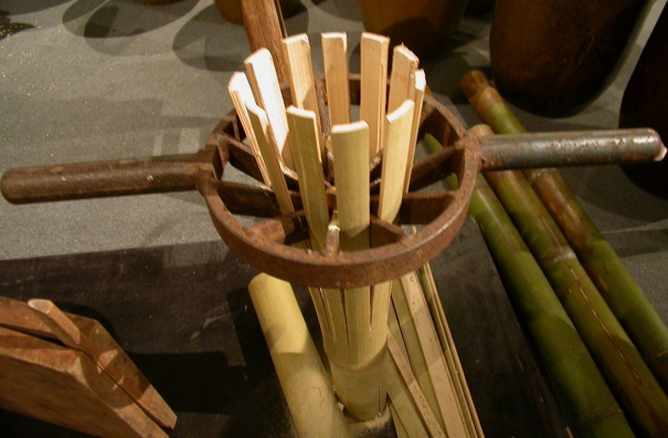 剖切竹子的工具,可快速將竹子切成寬度相同的竹條片。圓形器具內設置十二片鋼刀片,以同心圓方式固定,器具旁設置用以製作時施力的推把。將鋼刀具交會之圓心對準竹子斷面中央,順著竹子纖維將推把往下施壓,便可快速將竹子刨切成十二片寬度相同的竹條片。