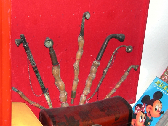 人類抽菸的記載,最早是一四九二年哥倫布發現新大陸時見到印第安土著抽菸。菸草在十六世紀末明代萬曆年間,由菲律賓的呂宋島傳入中國,最初只在廣東福建兩省少量種植,以旱煙管或水煙袋抽吸。 早煙桿最初多以竹木製作,兩端分?裝上銅製煙嘴和煙鍋即成,後來又有銅、銀等金屬和海藤、天然樹根等材料,使吸煙的樂趣也轉移到煙桿的製作上。早煙桿通常長約六十公分,有的長達一二○公分,可以隨身插掛褲腰上,吸煙時把熟煙裝進煙鍋裡,再用竹製的黃土紙捲成條狀做為火引慢慢點燃。