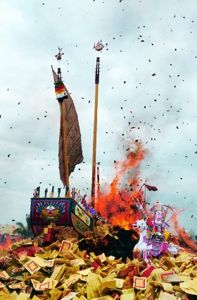 位於臺南縣西港鄉的慶安宮(主祀神天上聖母)自清代以來每三年一科舉行「刈香醮典」,俗稱「西港香」(又稱「西港仔香」)。這也是迎接代天巡狩的千歲爺蒞臨,掃除瘟疫邪祟,帶來合境平安的宗教性活動。每逢丑、辰、未、戌年時,在農曆四月中旬舉行西港香的王船祭典,參加西港刈香活動的村莊,早已超過上百個。其祭典活動包括:豎燈篙、王船進水和出澳、火醮、送火王、啟建王醮三天、往鹿耳門天后宮請媽祖、遶境三天、送王、恭送保生大帝和鹿耳門媽祖、謝燈篙。
