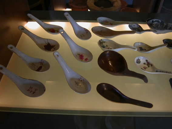 過去農家使用的湯匙有大、小之分,大型湯匙用於自湯碗取湯盛到個人碗內,小湯匙適用於個人碗內喝湯。早期農家湯匙有就地取材以竹筒削成,或者用木頭削成。經濟改善後使用陶質和瓷質的匙,常見的花色以白釉青花、黃釉、茶色釉為主,常見的花紋有壽字、喜字、花卉、枝葉等,甚至還有裝飾著填燒琺瑯或者銀質的匙。民國五○年代以後逐漸改用鋁製或不銹鋼製的湯瓢和湯匙。