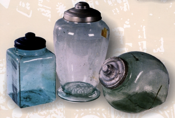 日據時期有販售糖果餅乾的商店,用各式各樣大小的玻璃罐盛裝,俗稱「糖仔罐」、「餅仔甕」。型態多樣的玻璃罐,大、中、小皆有,造型有方形的、圓形的、八角形、南瓜瓣形狀等,有立式或者臥式。共同特色是短頸、大口,便於伸手抓取。 玻璃罐的器蓋用薄金屬、鋁或合金製成,設計為不用螺旋紋的旋緊方式,利用由薄金屬的彈性,可緊密地蓋上,取用方便。罐之器身有素面或有模印的圖案,常見的印紋有網地花卉。透明外罐的內容物一目了然,可防蟲蟻、潮濕和灰塵。經濟寬裕的家庭也會擁有幾個玻璃糖果罐,維繫年長者與子孫的親情。