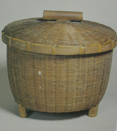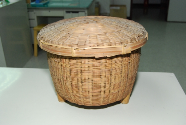 臺灣早期民間的碗籃,以竹條與藤條編成,碗籃身形接近圓筒形,平坦的底面與四個足。碗籃的蓋子像是倒置的圓盤形罩子,頂面中央有一個手持握的把部。蓋子與籃子的編製方式,是以寬而扁的枝條作骨架,細枝條沿著骨架的垂直方向細細編繞,直到成形。雖然大小枝條的縱橫編製緊密,同時還有透氣性質,因此碗盤用具收納於此碗籃中,一方面可以透氣乾爽,一方面可以保護飲食器皿不受髒污。
