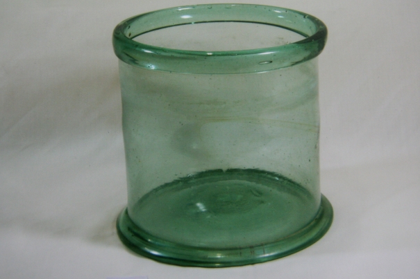 玻璃冰水筒另有一種名稱叫做蜜餞筒,是大型玻璃器,高度可到20公分以上,小型的高度大約10公分,大小視需要而定。直筒形,口徑與筒寬一致,筒口有厚唇,材質是帶一點淺綠色的透明玻璃。店家慣用的冰水筒無紋飾或僅有簡單紋飾,家庭用的冰筒紋飾雕刻精美較考究。