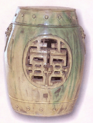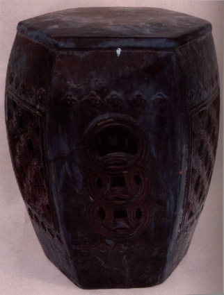 有靠背的坐具稱為椅子,而無靠背的坐具則通稱為凳子;其中方形的稱為方凳、而鼓形之木凳又稱為坐墩或鼓椅、那麼以陶製的凳子就稱作陶凳。凳的型式其實結合了杌及墩。早期一般坐墩會罩以繡布增加美觀,所以又稱繡墩。因為它所佔的面積很小,所以經常都是放置在房間裡,這類坐具四面都有裝飾,也不需要依靠,可以哪裡需要就放在哪裡。青花瓷墩上層座面呈圓形,中有鏤空古錢紋,坐時可通氣。鼓身腹部上下乳丁排列,圖案除有鏤空雙錢,還繪有富貴花、喜鵲和孔雀等,雖熱鬧喧擾,因青花瓷色而顯雅緻感。