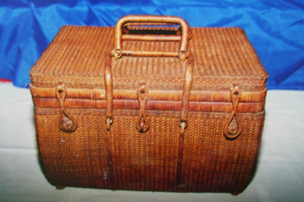 由於籐材料取得方便,早期有一種手提式的籐製手提箱產量極大,普遍受到歡迎。手提箱為長方形,壓挑編法細密緊實,上面也是籐編的平板蓋,加一對提耳和一個鎖扣,能裝衣物書籍等物,適合做為外出旅行的行李箱。