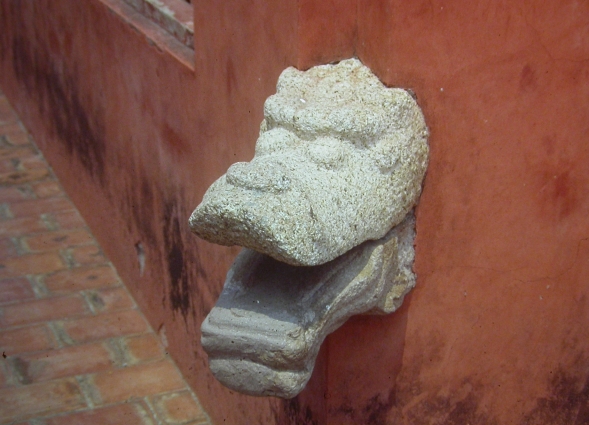 又稱為「散水」或「落水口」,係屋坡相交天溝之落水頭部位或是排水溝尾端,作成鯉魚或龍首狀裝飾物,使雨水從其口中自然吐落,故稱為吐水。
