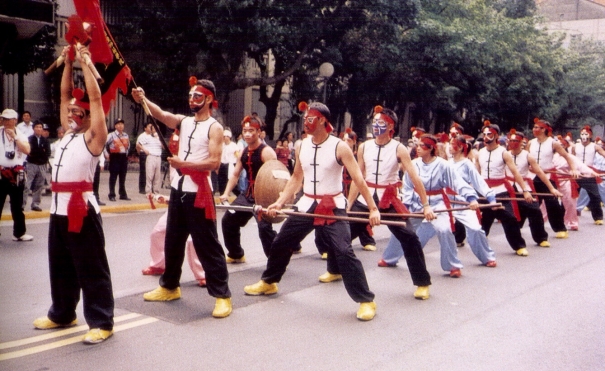 宋江陣開始於何時並無明確記載,比較可靠的說法是類似民間的自衛組織,取名自《水滸傳》宋江聚義梁山泊的故事。因組成人數眾多,陣法操演與軍隊相近,有說是源自明代名將戚繼光的「鴛鴦陣」和「藤牌舞」,也有認為是鄭成功的「藤牌兵」及「五花操兵法」。宋江陣流行於臺灣南部,以臺南縣、高雄縣最多。宋江陣的祖師爺是田都元帥,在臺灣凡是有宋江陣的廟宇,都會在廟的側殿或另搭一間草寮,設「宋江館」,俗稱「宋江寮」,在館(寮)內供奉田都元帥,休陣時安置兵器之用。