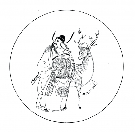 「官」與「冠」音似,「祿」與「鹿」同音,身著官袍的人物,一手持冠、一手捧鹿,代表官上加官、高官厚祿,是祝頌官位高昇、飛黃騰達的吉祥意義。
