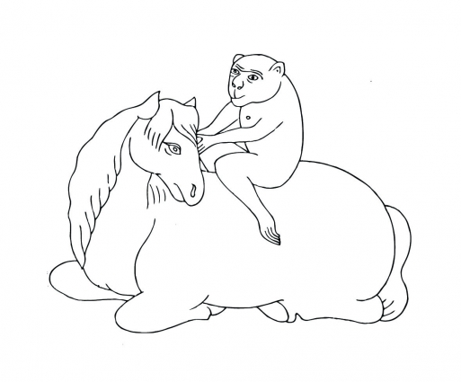 猴子在地支的位置為申,猴子騎在馬上,取其音意為「馬上升官」,是傳統的吉祥紋樣。