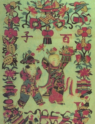 中國人自古以來重視傳宗接代,「百子千孫」才是好福氣,所以常作「百子圖」,繪上一百個正在嬉戲的小男孩,或寫上百子,祈願多子多孫、家世興旺。