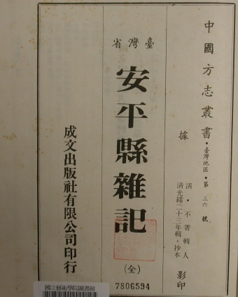 成書於日據時代初期的《安平縣雜記》,資料多來自日據之前,作者不詳,或為日本人,其「工業」篇敘述包括日據以前以臺南地為中心的臺灣工藝計一百條,包含民生器用、生產工具、飲食、習俗所需與特殊工藝,大體可由之了解早期臺灣大都會工藝品類之形形色色。
