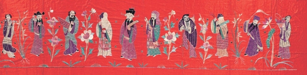 八仙綵是繪製或刺繡有八仙圖像的紅綵,臺灣民間通常在新屋落成和舉行嫁娶喜事之時,或是建醮期間,多會在門楣之上懸掛八仙綵以辟邪,並祈求喜慶吉祥。八仙綵的製作通常以紅色布條為底,布面上以彩繪或刺繡方式描繪南極仙翁和道教八仙的形象,民間常見的八仙為李鐵拐、鍾離權、呂洞賓、張果老、曹國舅、韓湘子、藍采和、何仙姑等八位後天神仙,八位都騎乘在不同神獸的坐騎之上,以騎鶴的南極仙翁居中,八仙分列兩側。八仙綵的尺寸長短不一,主要以橫幅的寬度符合文公尺的吉利尺寸即可。尺寸較大的八仙綵,通常會在南極仙翁和八仙圖像之間增加「金玉滿堂」之類的文字,並在周圍加上蟠龍、如意雲、蝙蝠之類的紋飾,以增加其華麗感。