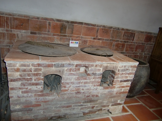 金門一般農家所用的灶,大都是兩個併在一起,一大一小。灶面有二個圓洞,放置大小銑鐵鍋各一個。灶的正面有兩個灶門,一上一下,上小下大,和灶面的洞相通。灶門進門處用磚平隔著約十五公分,然後再以鐵條由灶門向內逐條間隔排列,焚火時從上門裝進柴薪,燃燒後的灰燼(俗稱火麩)會從鐵條的間隔中落下,再用一塊「火麩板仔」(火燼扒)由下門掏出。灶門是與柴薪摩擦最頻繁的地方,所以都用紅磚(顏只)砌成。