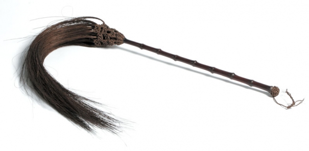 拂塵本是清潔用具,但常見被用來做為宗教生活和教化的暗諭,比如羅漢群之中的拂塵羅漢,手持拂塵,喻拂塵能袪除眾生的煩惱;另禪宗溈山禪師的「拂塵說法」,拂塵在他手中豎起或垂下,求法者在其中領悟人格的尊嚴和修法從頭的啟示。拂塵也用來做為神像的持物和靈媒法師的法器,為人消災解厄。 拂塵材料是在一支手柄上綑綁雞毛成團,也叫雞毛撣子。另一種則是用馬尾做成,既是清潔工具,又能驅趕蟲蠅。
