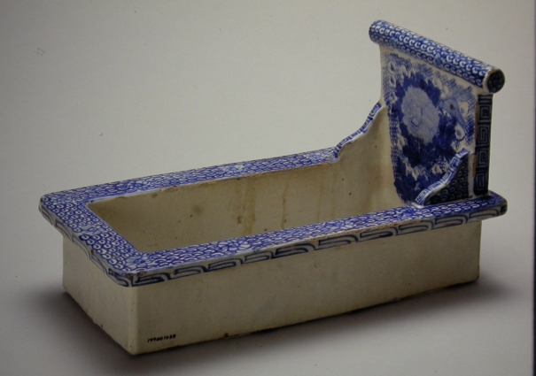 青花瓷器是利用氧化鈷做為顏料,畫在白色瓷坯或有色瓷坯上,燒出白底或有色底、藍色圖案的釉下彩瓷器。唐代即開始有青花瓷器,到明清兩代已發展至高峰。 臺灣日據早期的高級便器大多來自日本,這些高級便器以青花瓷器最多,在馬桶或尿池精繪牡丹和各種花草,竟使得承臭的便器顯得高雅而不俗。到了青花便器由本地生產之後,便常見青花的繪工潦草而隨便,甚至以顏料隨意噴灑送燒,這類粗糙的青花馬桶,卻有催人草草了事遠離燻臭的趣味。