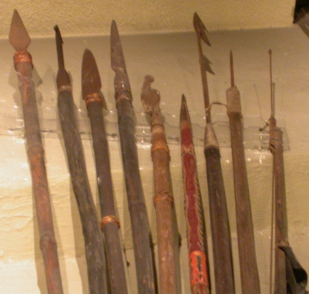 在《番社采風圖》中,原住民手持標槍追逐鹿群,種芋時標槍插在不遠處隨時做為防禦使用,也有狩獵歸來,以標槍肩扛獵物的畫面。 鐵製標槍槍頭尖刃後端倒鉤彎出,使刺中獵物後不會甩落脫身,在槍頭上接一支長棍,掩至適當距離單手投擲,具強力殺傷效果。
