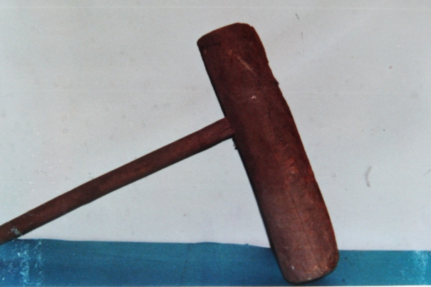 木槌是以一塊粗厚堅硬的木頭做為槌體,中間穿榫一根長木柄。木槌用於打樁、插鉤釘,舉起時不會太重,也不會讓樁頭受損破裂,相對的,木槌的損壞率也比一般工具還高。還有一種短柄木槌則是用來做為樁米使用。