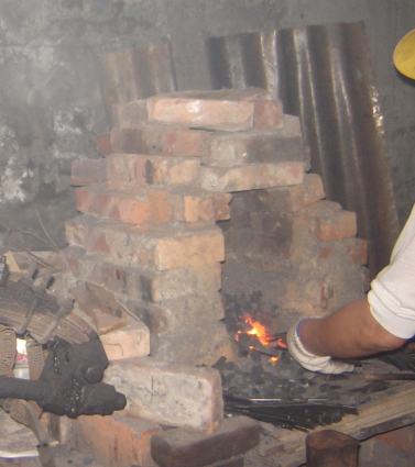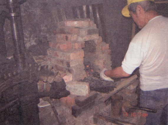 火爐為磚砌穹頂爐,上方留一出風管,爐口寬大,中間隔一層,能通風透氣,裝風櫃來助燃,上層以焦煤做燃料,鐵料直接置於碳火上熔燒,不會產生惡臭。