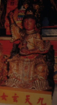 九天玄女,略稱玄女,俗稱九天娘娘或連理媽。宋代張君房撰《雲笈七籤》上記載,九天玄女為上古之神女,為黃帝之師,太元聖母(即聖母元君)之高足,跟師學習兵法與數術。當黃帝戰蚩尤於涿鹿時,玄女曾下降,授黃帝以兵法,並為帝製戰鼓八十面,遂破蚩尤。相傳,「六壬」、「盾甲」諸古戰法也是玄女所授。 《黃帝內傳》云:「帝伐蚩尤,玄女為黃帝製夔鼓八十面」王勃撰《乾元殿頌》云:「帝聞鼙,玄女薦龍庭之策」等便是古書上對九天玄女史蹟方面的記載。《隋書》上另有記載,稱:玄女尚有為黃帝解答男女俯仰、升降、盈虛之術。 九天玄女最初的形象為人身鳥首,在民間信仰中,被奉為勸善懲惡之神,俗信只要玄女唸咒施術,千百鬼將、百萬神兵,立即下降除妖,民間或易將「女媧娘娘」與「九天玄女」視為同一神。